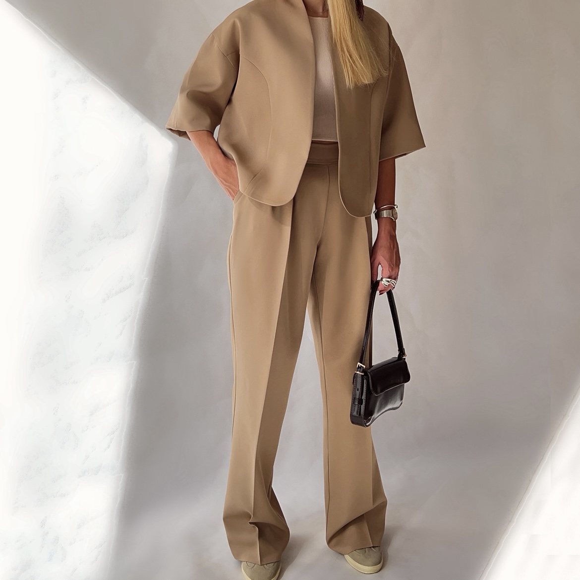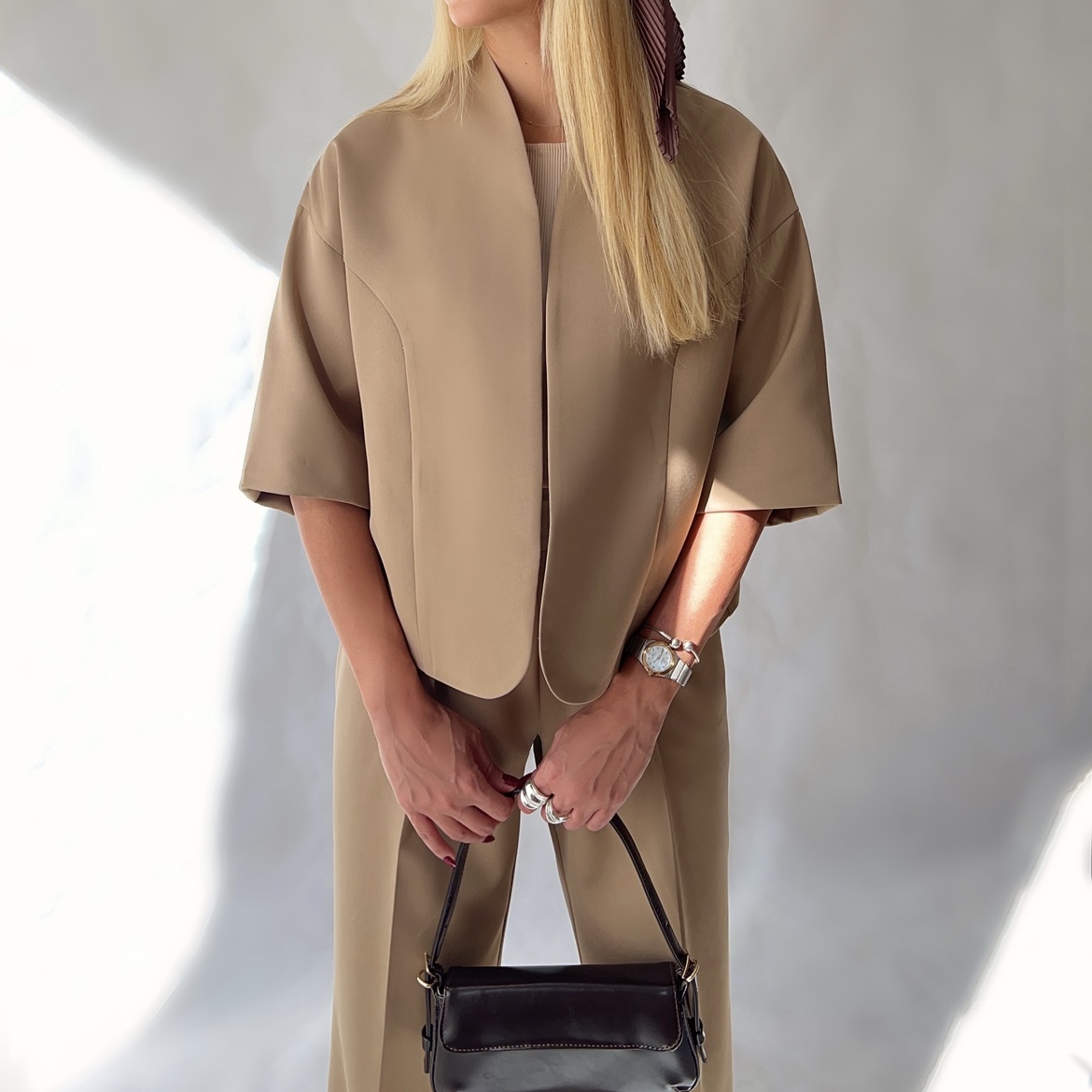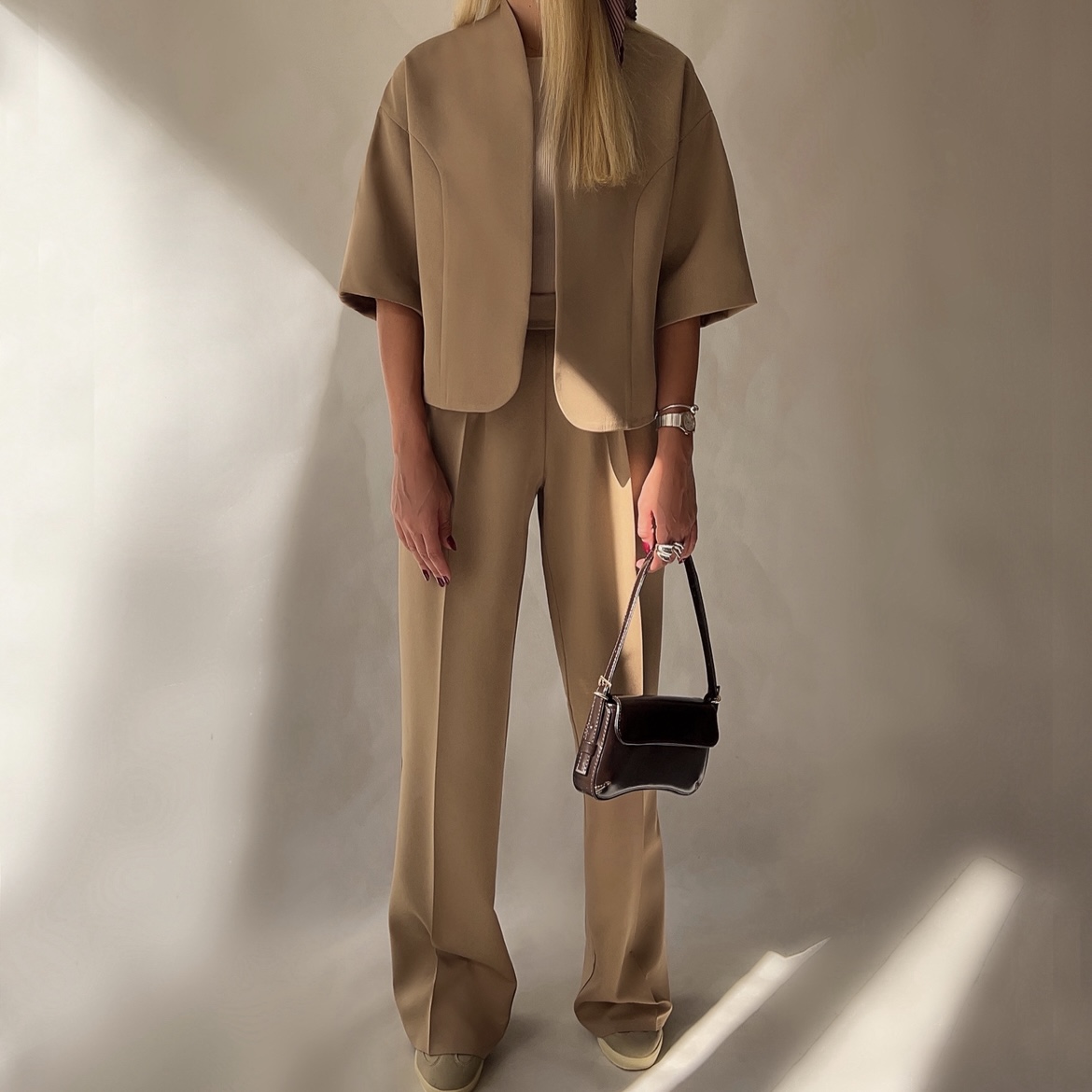 خانهرزیلی فشنمانتو و کت ست کت کراپ وشلوار (نسکافه اى)